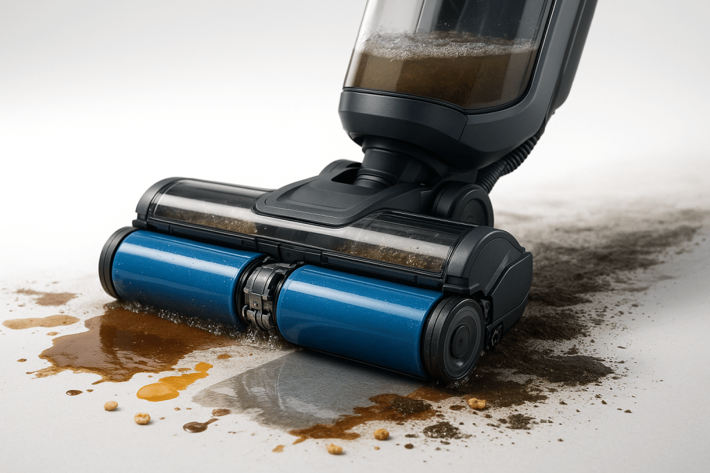 Beim Frühstück kippte mein Sohn Orangensaft auf den Parkettboden. Der WashG1 nahm den klebrigen Saft und die Krümel in einem Zug auf – kein Nachwischen nötig. Nach dem Backen entfernte er Mehlreste und verschüttete Milch mühelos von den Fliesen. Selbst hartnäckige Kaffeeflecken verschwanden nach wenigen Überläufen im Boost‑Modus. Nach der Reinigung stellte ich das Gerät in die Station, drückte die Selbstreinigungstaste und sah zu, wie Wasser durch die Trommeln spülte – ein hygienischer Vorteil gegenüber Eimermopps.